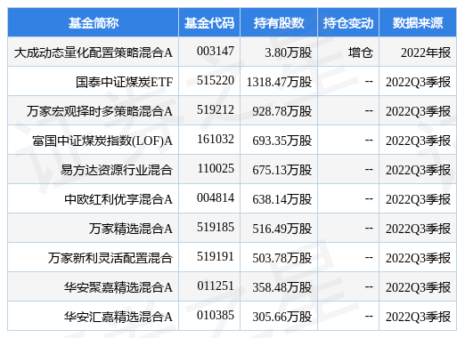 重仓潞安环能的前十大基金见下表: