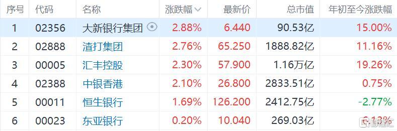 格隆汇2月8日丨香港银行股集体上涨,大新银行集团涨2.8%,渣打集团、汇丰控股、中银香港涨2%,恒生银行涨1%,东亚银行跟涨。2月6日,香港与内地实现全面通关。花旗2月6日发报告指,香港银行股年初至今上升了14%,主要受到内地更广泛重新开放所支持。由于估值更为吸引,加上资本回报上升空间及盈利能力改善,汇控及渣打的股价表现跑赢本地同业。花旗继续视汇控为行业首选,认为集团今年将提供更好的资本回报上行空间,并有强劲盈利增长,将其股份目标价由52.8港元上调至62.9港元。该行指假如渣打今年能达成目标为实现10%的有形股本回报,较计划提早一年达成,股价有上行可能,将渣打股价目标价由56.4港元升至76.5港元,评级维持“中性”。