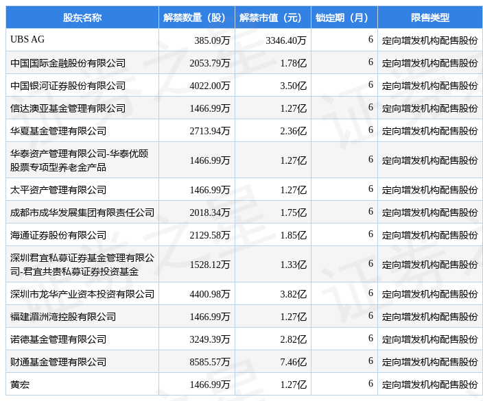 本次解禁涉及股东明细见下表: