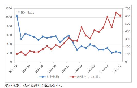 此外,从各类机构理财产品存续情况来看,截至2022年底,大型银行、股份制银行、城商行以及农村金融机构等理财存续规模均同比下降,理财公司的理财产品存续规模为22.24万亿元,同比上升29.36%。